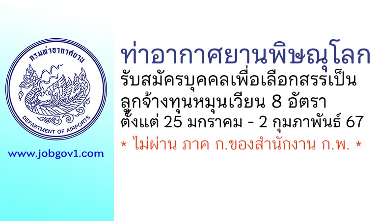 ท่าอากาศยานพิษณุโลก รับสมัครบุคคลเพื่อเลือกสรรเป็นลูกจ้างทุนหมุนเวียน 8 อัตรา ตั้งแต่ 25 มกราคม – 2 กุมภาพันธ์ 2567
