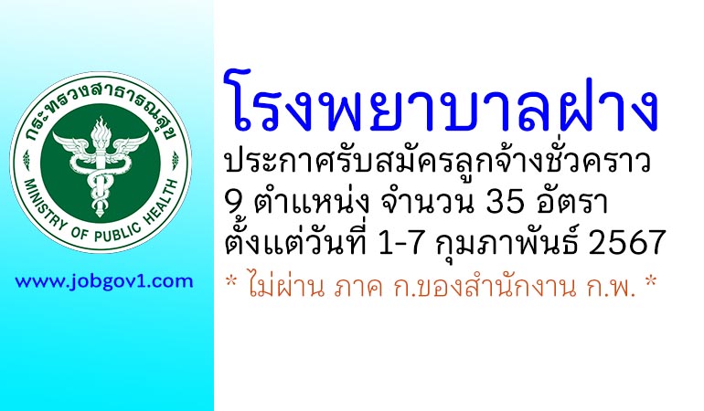 โรงพยาบาลฝาง รับสมัครลูกจ้างชั่วคราว 9 ตำแหน่ง 35 อัตรา ตั้งแต่วันที่ 1-7 กุมภาพันธ์ 2567