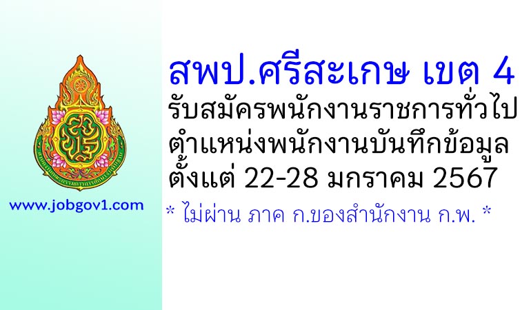 ประกาศสำนักงานเขตพื้นที่การศึกษาประถมศึกษาศรีสะเกษ เขต 4 เรื่อง รับสมัครคัดเลือกบุคคลเพื่อเลือกสรรเป็นพนักงานราชการทั่วไป ตำแหน่ง พนักงานบันทึกข้อมูล