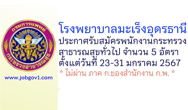 โรงพยาบาลมะเร็งอุดรธานี รับสมัครพนักงานกระทรวงสาธารณสุขทั่วไป 5 อัตรา ตั้งแต่วันที่ 23-31 มกราคม 2567