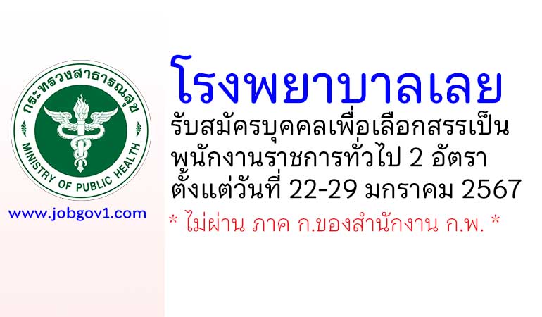 โรงพยาบาลเลย รับสมัครบุคคลเพื่อเลือกสรรเป็นพนักงานราชการทั่วไป 2 อัตรา ตั้งแต่วันที่ 22-29 มกราคม 2567