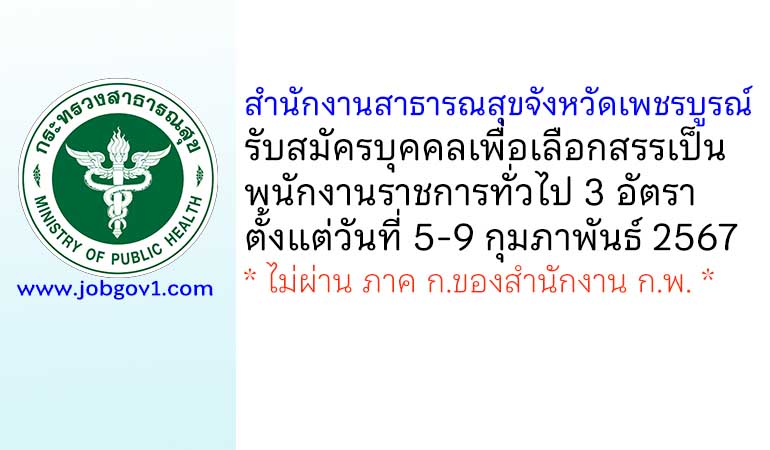 สำนักงานสาธารณสุขจังหวัดเพชรบูรณ์ รับสมัครบุคคลเพื่อเลือกสรรเป็นพนักงานราชการทั่วไป 3 อัตรา ตั้งแต่วันที่ 5-9 กุมภาพันธ์ 2567
