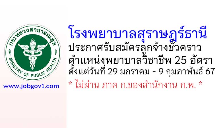 โรงพยาบาลสุราษฎร์ธานี รับสมัครลูกจ้างชั่วคราว ตำแหน่งพยาบาลวิชาชีพ 25 อัตรา ตั้งแต่วันที่ 29 มกราคม – 9 กุมภาพันธ์ 2567