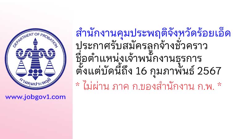 ประกาศสำนักงานคุมประพฤติจังหวัดร้อยเอ็ด เรื่อง รับสมัครสอบคัดเลือกบุคคลเพื่อเข้าทำงานเป็นลูกจ้างชั่วคราว