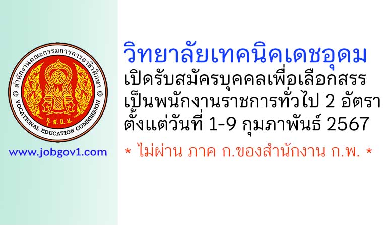 วิทยาลัยเทคนิคเดชอุดม รับสมัครบุคคลเพื่อเลือกสรรเป็นพนักงานราชการทั่วไป 2 อัตรา ตั้งแต่วันที่ 1-9 กุมภาพันธ์ 2567