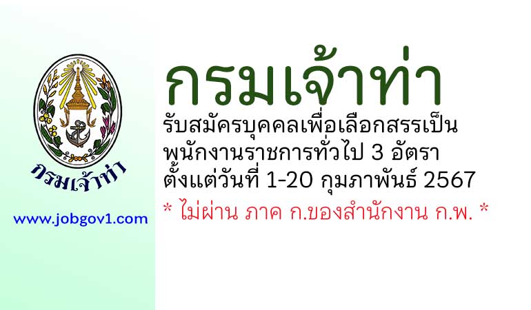 กรมเจ้าท่า รับสมัครบุคคลเพื่อเลือกสรรเป็นพนักงานราชการทั่วไป 3 อัตรา ตั้งแต่วันที่ 1-20 กุมภาพันธ์ 2567