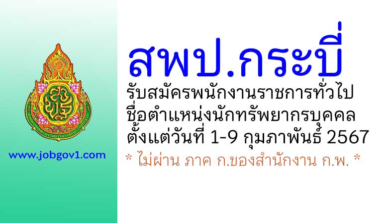 สพป.กระบี่ รับสมัครพนักงานราชการทั่วไป ตำแหน่งนักทรัพยากรบุคคล ตั้งแต่วันที่ 1-9 กุมภาพันธ์ 2567