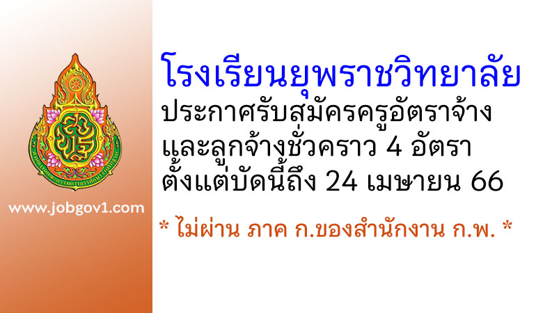 โรงเรียนยุพราชวิทยาลัย รับสมัครครูอัตราจ้าง และลูกจ้างชั่วคราว 4 อัตรา ตั้งแต่บัดนี้ถึง 24 เมษายน 2566