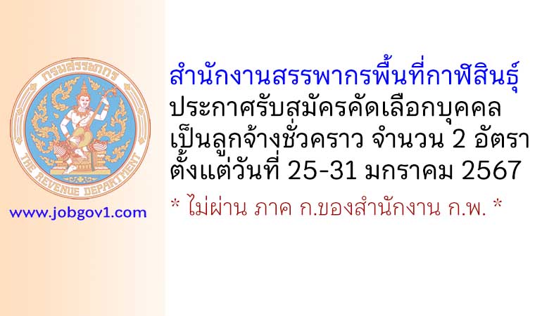 สำนักงานสรรพากรพื้นที่กาฬสินธุ์ รับสมัครคัดเลือกบุคคลเป็นลูกจ้างชั่วคราว 2 อัตรา ตั้งแต่วันที่ 25-31 มกราคม 2567
