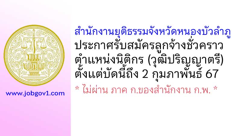 สำนักงานยุติธรรมจังหวัดหนองบัวลำภู รับสมัครลูกจ้างชั่วคราว ตำแหน่งนิติกร ตั้งแต่บัดนี้ถึง 2 กุมภาพันธ์ 2567