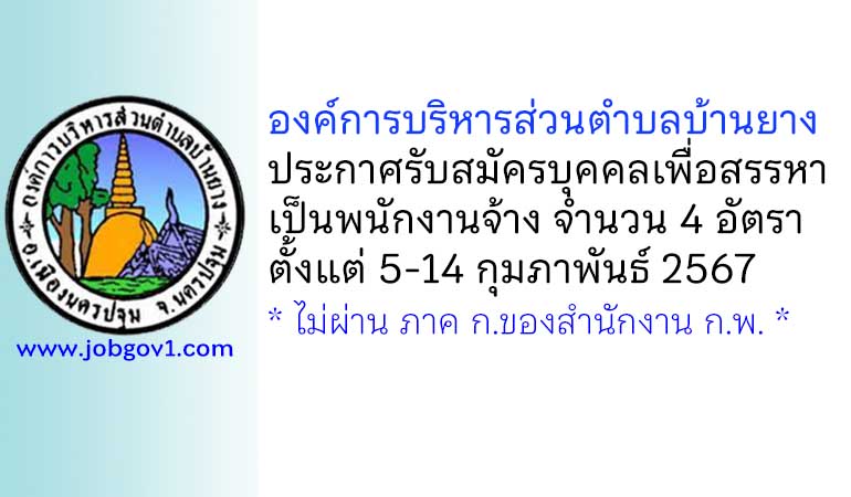 องค์การบริหารส่วนตำบลบ้านยาง รับสมัครบุคคลเพื่อสรรหาเป็นพนักงานจ้าง 4 อัตรา ตั้งแต่ 5-14 กุมภาพันธ์ 2567