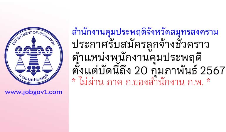 สำนักงานคุมประพฤติจังหวัดสมุทรสงคราม รับสมัครลูกจ้างชั่วคราว ตำแหน่งพนักงานคุมประพฤติ ตั้งแต่บัดนี้ถึง 20 กุมภาพันธ์ 2567