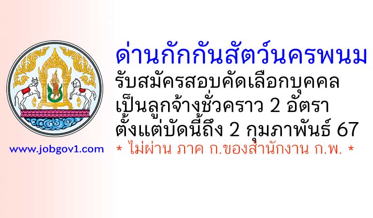 ด่านกักกันสัตว์นครพนม รับสมัครสอบคัดเลือกบุคคลเป็นลูกจ้างชั่วคราว 2 อัตรา ตั้งแต่บัดนี้ถึง 2 กุมภาพันธ์ 2567