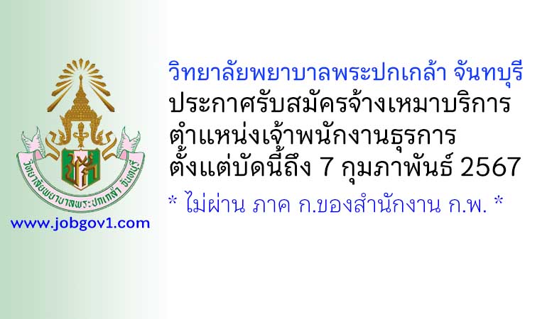 ประกาศวิทยาลัยพยาบาลพระปกเกล้า จันทบุรี เรื่อง รับสมัครจ้างเหมาบริการ ตำแหน่ง เจ้าพนักงานธุรการ
