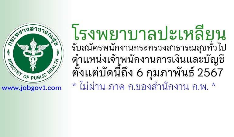 โรงพยาบาลปะเหลียน รับสมัครพนักงานกระทรวงสาธารณสุขทั่วไป ตำแหน่งเจ้าพนักงานการเงินและบัญชี ตั้งแต่บัดนี้ถึง 6 กุมภาพันธ์ 2567