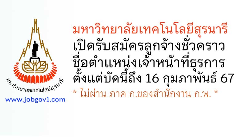 มหาวิทยาลัยเทคโนโลยีสุรนารี รับสมัครลูกจ้างชั่วคราว ตำแหน่งเจ้าหน้าที่ธุรการ ตั้งแต่บัดนี้ถึง 16 กุมภาพันธ์ 2567