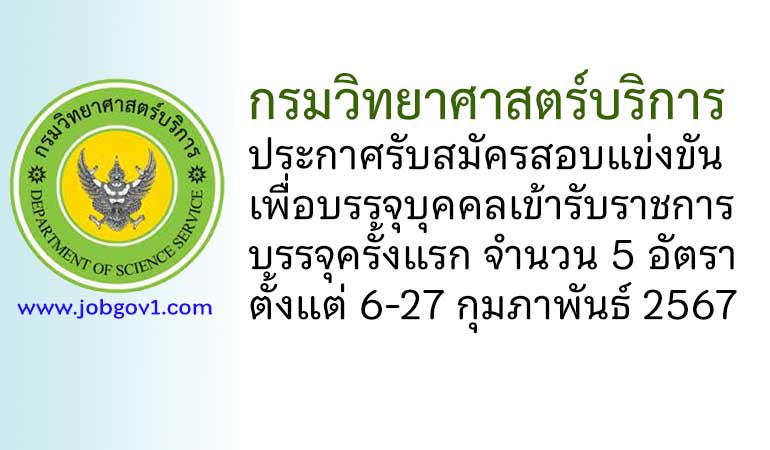 กรมวิทยาศาสตร์บริการ รับสมัครสอบแข่งขันเพื่อบรรจุบุคคลเข้ารับราชการ บรรจุครั้งแรก 5 อัตรา ตั้งแต่วันที่ 6-27 กุมภาพันธ์ 2567