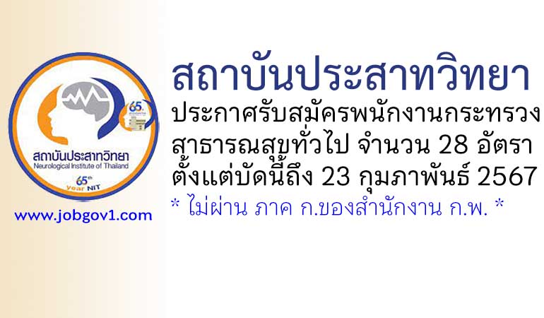 สถาบันประสาทวิทยา รับสมัครพนักงานกระทรวงสาธารณสุขทั่วไป 28 อัตรา ตั้งแต่บัดนี้ถึง 23 กุมภาพันธ์ 2567