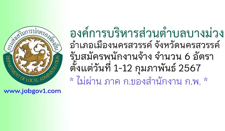 องค์การบริหารส่วนตำบลบางม่วง รับสมัครบุคคลเพื่อสรรหาและเลือกสรรเป็นพนักงานจ้าง 6 อัตรา ตั้งแต่วันที่ 1-12 กุมภาพันธ์ 2567