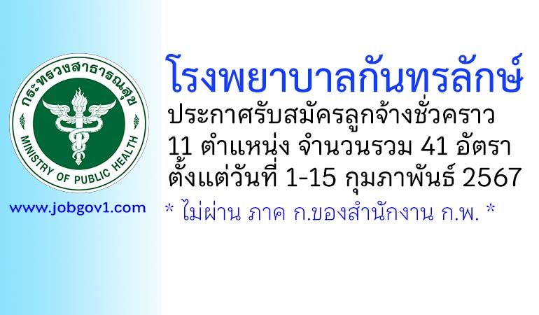 โรงพยาบาลกันทรลักษ์ รับสมัครลูกจ้างชั่วคราว 11 ตำแหน่ง 41 อัตรา ตั้งแต่วันที่ 1-15 กุมภาพันธ์ 2567