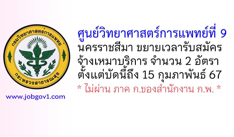 ศูนย์วิทยาศาสตร์การแพทย์ที่ 9 นครราชสีมา ขยายเวลารับสมัครจ้างเหมาบริการ จำนวน 2 อัตรา ตั้งแต่บัดนี้ถึง 15 กุมภาพันธ์ 2567