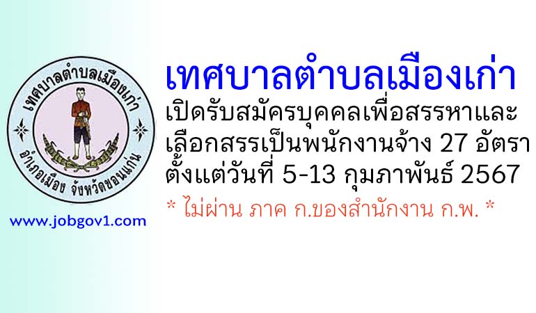เทศบาลตำบลเมืองเก่า รับสมัครบุคคลเพื่อสรรหาและเลือกสรรเป็นพนักงานจ้าง 27 อัตรา ตั้งแต่วันที่ 5-13 กุมภาพันธ์ 2567
