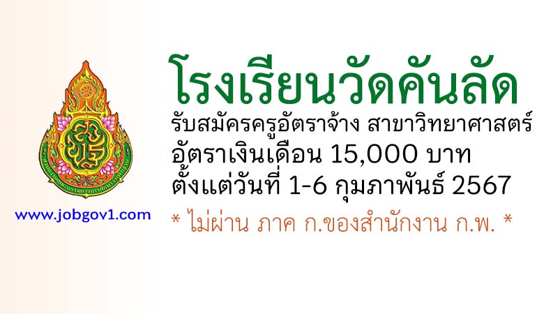โรงเรียนวัดคันลัด รับสมัครครูอัตราจ้าง สาขาวิทยาศาสตร์ ตั้งแต่วันที่ 1-6 กุมภาพันธ์ 2567