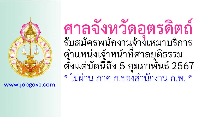 ศาลจังหวัดอุตรดิตถ์ รับสมัครพนักงานจ้างเหมาบริการ ตำแหน่งเจ้าหน้าที่ศาลยุติธรรม ตั้งแต่บัดนี้ถึง 5 กุมภาพันธ์ 2567