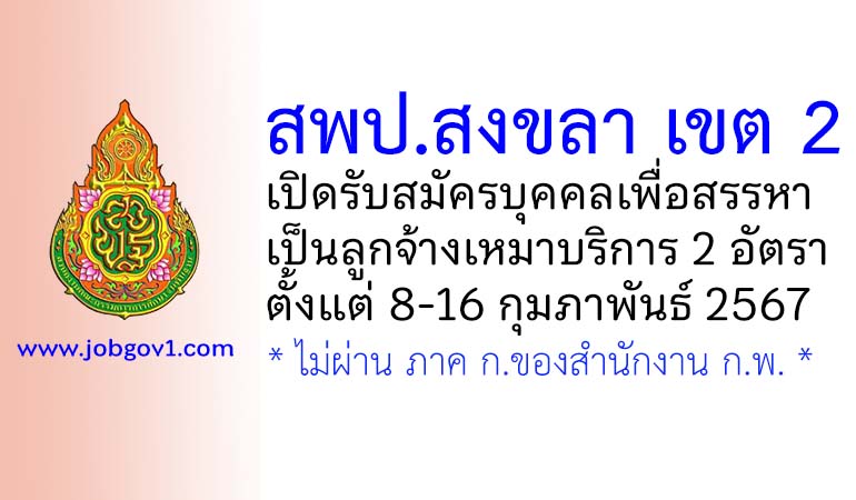 สพป.สงขลา เขต 2 รับสมัครบุคคลเพื่อสรรหาเป็นลูกจ้างเหมาบริการ 2 อัตรา ตั้งแต่วันที่ 8-16 กุมภาพันธ์ 2567