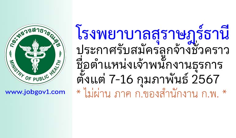 โรงพยาบาลสุราษฎร์ธานี รับสมัครลูกจ้างชั่วคราว ตำแหน่งเจ้าพนักงานธุรการ ตั้งแต่วันที่ 7-16 กุมภาพันธ์ 2567