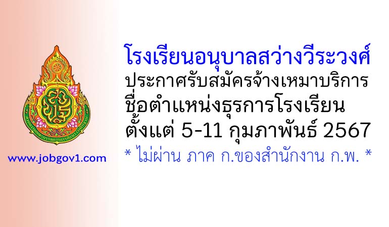 โรงเรียนอนุบาลสว่างวีระวงศ์ รับสมัครจ้างเหมาบริการ ตำแหน่งธุรการโรงเรียน ตั้งแต่วันที่ 5-11 กุมภาพันธ์ 2567