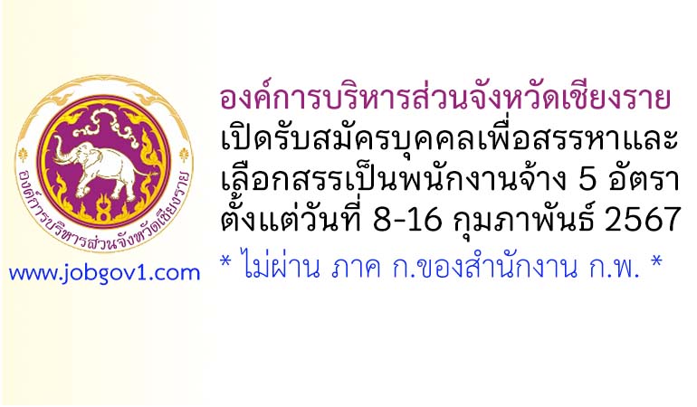 องค์การบริหารส่วนจังหวัดเชียงราย รับสมัครบุคคลเพื่อสรรหาและเลือกสรรเป็นพนักงานจ้าง 5 อัตรา ตั้งแต่วันที่ 8-16 กุมภาพันธ์ 2567
