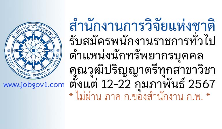 สำนักงานการวิจัยแห่งชาติ รับสมัครพนักงานราชการทั่วไป ตำแหน่งนักทรัพยากรบุคคล ตั้งแต่วันที่ 12-22 กุมภาพันธ์ 2567