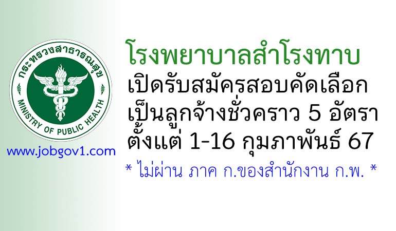 โรงพยาบาลสำโรงทาบ รับสมัครสอบคัดเลือกเป็นลูกจ้างชั่วคราว 5 อัตรา ตั้งแต่วันที่ 1-16 กุมภาพันธ์ 2567