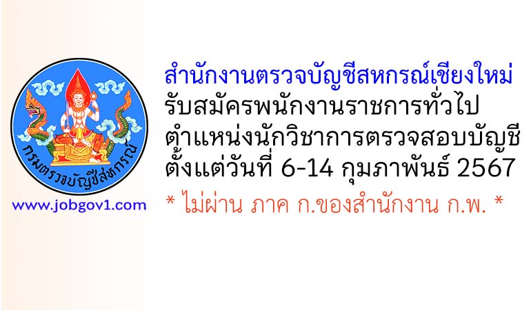 สำนักงานตรวจบัญชีสหกรณ์เชียงใหม่ รับสมัครพนักงานราชการทั่วไป ตำแหน่งนักวิชาการตรวจสอบบัญชี ตั้งแต่วันที่ 6-14 กุมภาพันธ์ 2567