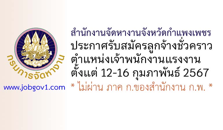 สำนักงานจัดหางานจังหวัดกำแพงเพชร รับสมัครลูกจ้างชั่วคราว ตำแหน่งเจ้าพนักงานแรงงาน ตั้งแต่วันที่ 12-16 กุมภาพันธ์ 2567