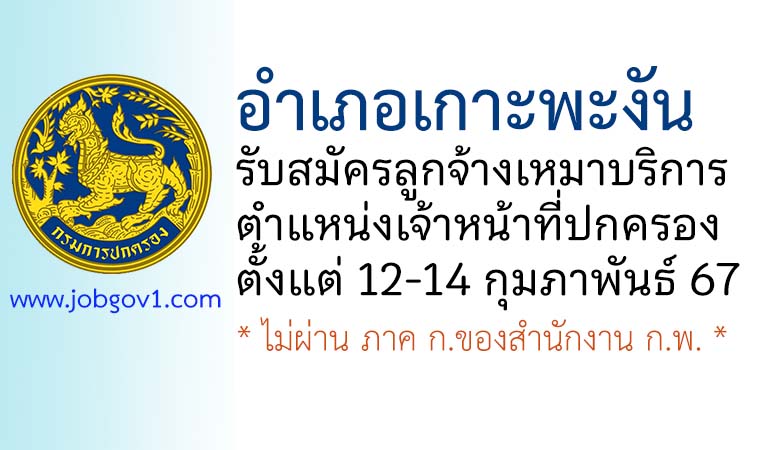 อำเภอเกาะพะงัน รับสมัครลูกจ้างเหมาบริการ ตำแหน่งเจ้าหน้าที่ปกครอง ตั้งแต่วันที่ 12-14 กุมภาพันธ์ 2567