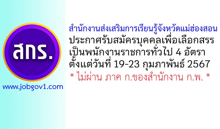 สำนักงานส่งเสริมการเรียนรู้จังหวัดแม่ฮ่องสอน รับสมัครบุคคลเพื่อเลือกสรรเป็นพนักงานราชการทั่วไป 4 อัตรา ตั้งแต่วันที่ 19-23 กุมภาพันธ์ 2567