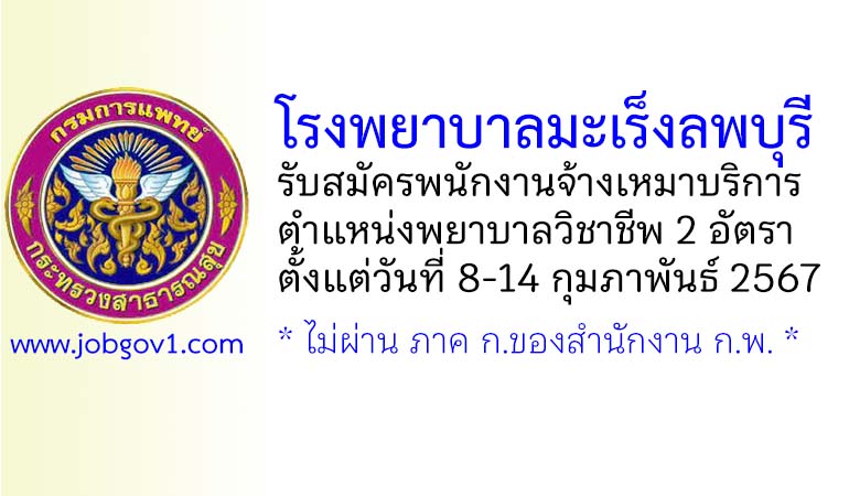 โรงพยาบาลมะเร็งลพบุรี รับสมัครพนักงานจ้างเหมาบริการ ตำแหน่งพยาบาลวิชาชีพ 2 อัตรา ตั้งแต่วันที่ 8-14 กุมภาพันธ์ 2567