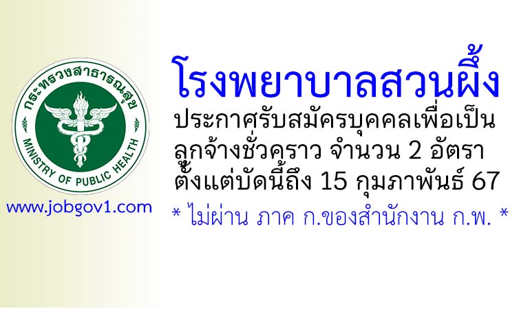 โรงพยาบาลสวนผึ้ง รับสมัครบุคคลเป็นลูกจ้างชั่วคราว 2 อัตรา ตั้งแต่บัดนี้ถึง 15 กุมภาพันธ์ 2567
