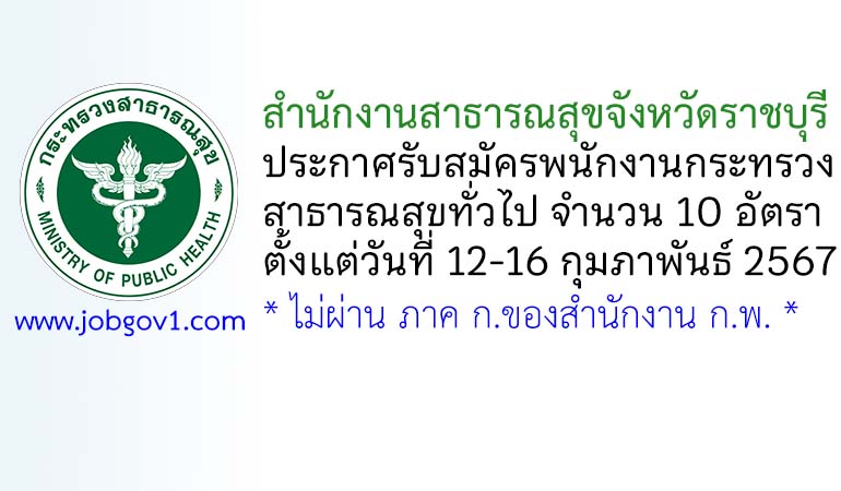 สำนักงานสาธารณสุขจังหวัดราชบุรี รับสมัครพนักงานกระทรวงสาธารณสุขทั่วไป 10 อัตรา ตั้งแต่วันที่ 12-16 กุมภาพันธ์ 2567