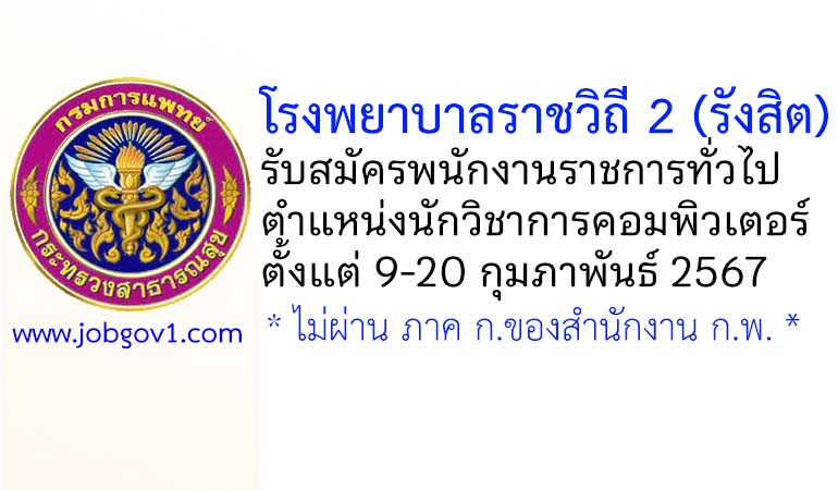 โรงพยาบาลราชวิถี 2 (รังสิต) รับสมัครพนักงานราชการ ตำแหน่งนักวิชาการคอมพิวเตอร์ ตั้งแต่วันที่ 9-20 กุมภาพันธ์ 2567