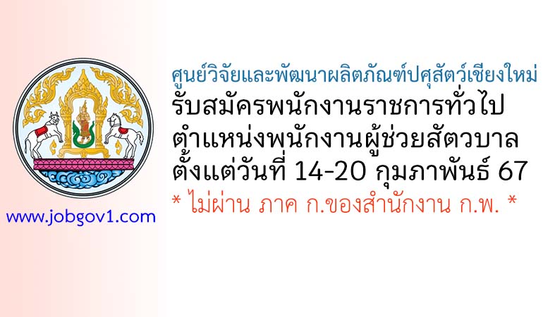 ศูนย์วิจัยและพัฒนาผลิตภัณฑ์ปศุสัตว์เชียงใหม่ รับสมัครพนักงานราชการทั่วไป ตำแหน่งพนักงานผู้ช่วยสัตวบาล ตั้งแต่วันที่ 14-20 กุมภาพันธ์ 2567