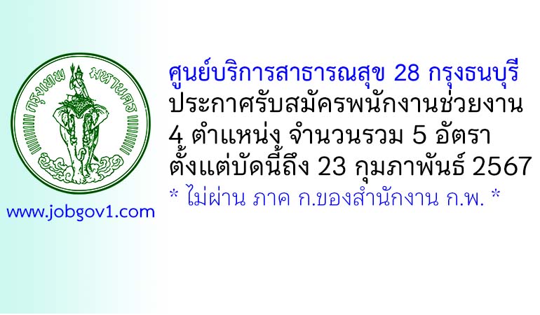 ศูนย์บริการสาธารณสุข 28 กรุงธนบุรี รับสมัครพนักงานช่วยงาน 6 อัตรา ตั้งแต่บัดนี้ถึง 23 กุมภาพันธ์ 2567