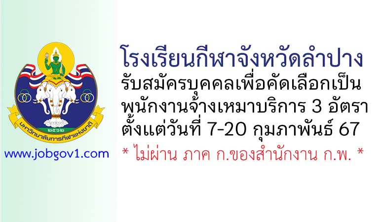 โรงเรียนกีฬาจังหวัดลำปาง รับสมัครพนักงานจ้างเหมาบริการ 3 อัตรา ตั้งแต่วันที่ 7-20 กุมภาพันธ์ 2567