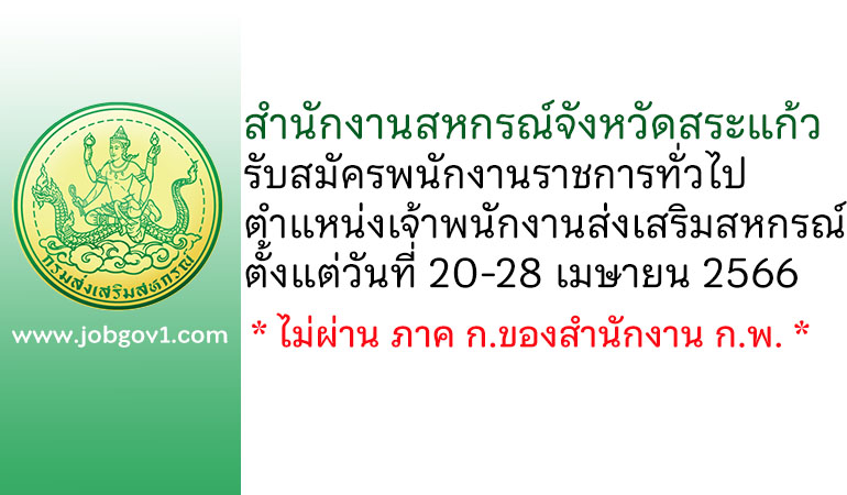 ประกาศจังหวัดสระแก้ว เรื่อง รับสมัครบุคคลเพื่อเลือกสรรเป็นพนักงานราชการทั่วไป ตำแหน่ง เจ้าพนักงานส่งเสริมสหกรณ์