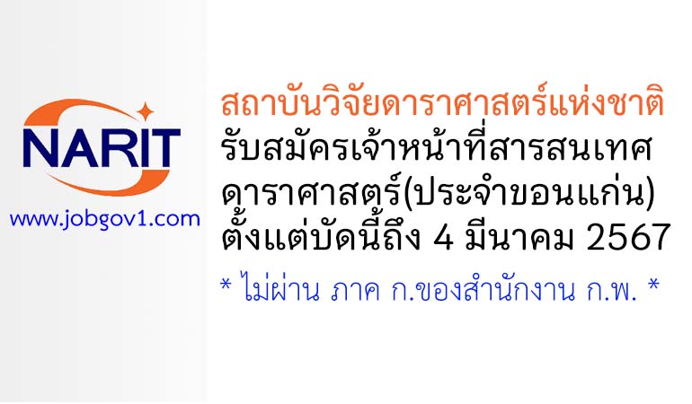 สถาบันวิจัยดาราศาสตร์แห่งชาติ รับสมัครเจ้าหน้าที่สารสนเทศดาราศาสตร์(ขอนแก่น) ตั้งแต่บัดนี้ถึง 4 มีนาคม 2567