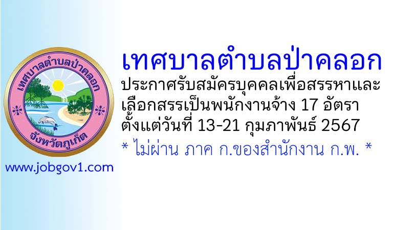 เทศบาลตำบลป่าคลอก รับสมัครบุคคลเพื่อสรรหาและเลือกสรรเป็นพนักงานจ้าง 17 อัตรา ตั้งแต่วันที่ 13-21 กุมภาพันธ์ 2567