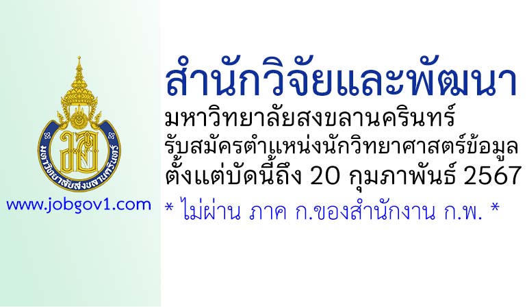 สำนักวิจัยและพัฒนา มหาวิทยาลัยสงขลานครินทร์ รับสมัครตำแหน่งนักวิทยาศาสตร์ข้อมูล ตั้งแต่บัดนี้ถึง 20 กุมภาพันธ์ 2567