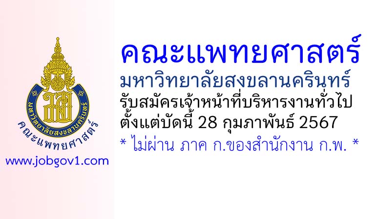 คณะแพทยศาสตร์ มหาวิทยาลัยสงขลานครินทร์ รับสมัครตำแหน่งเจ้าหน้าที่บริหารงานทั่วไป ตั้งแต่บัดนี้ถึง 28 กุมภาพันธ์ 2567